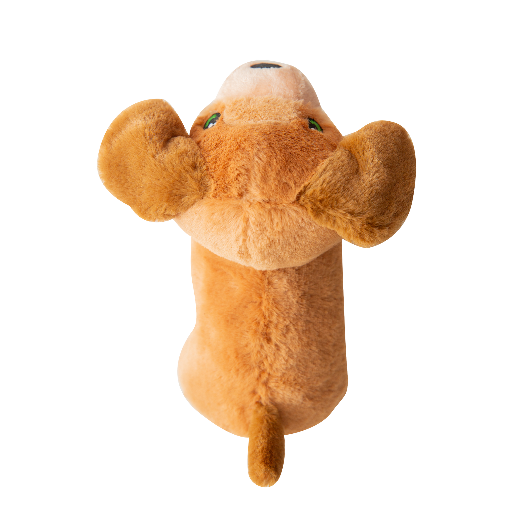 This plush dog toy features a soft brown body with floppy ears and embroidered facial details for a classic, friendly look. The velvety fabric is comfortable for cuddling, while the lightweight construction makes it easy for dogs to carry, toss, and enjoy during playtime.