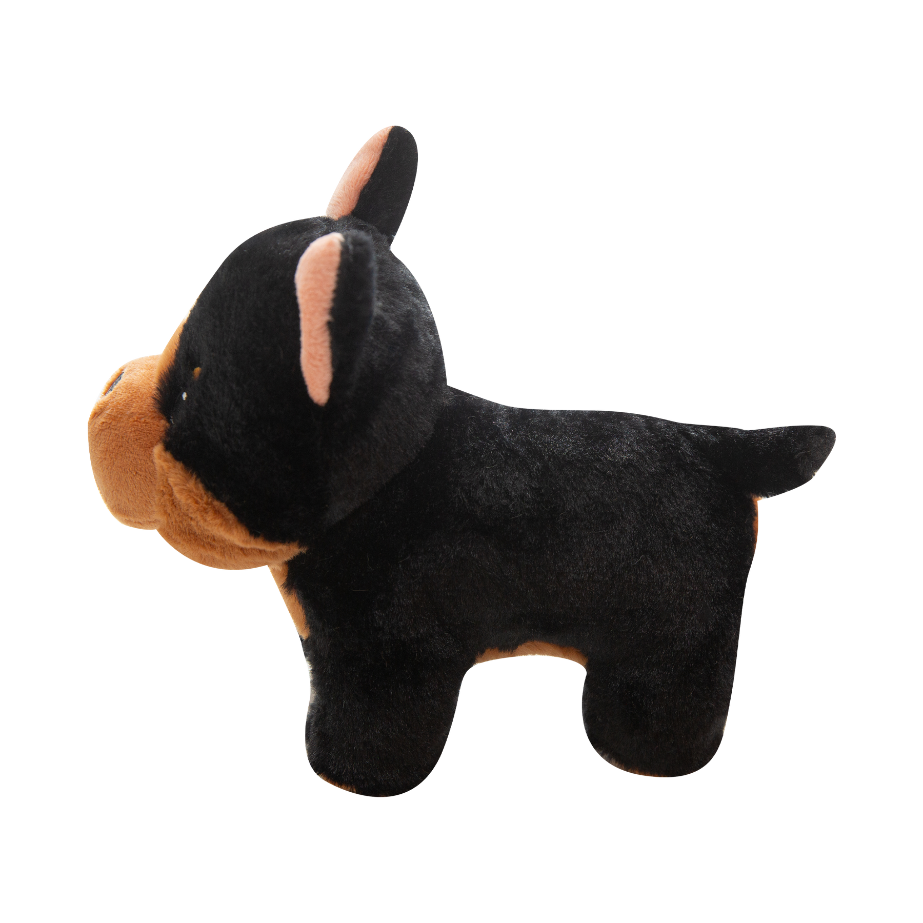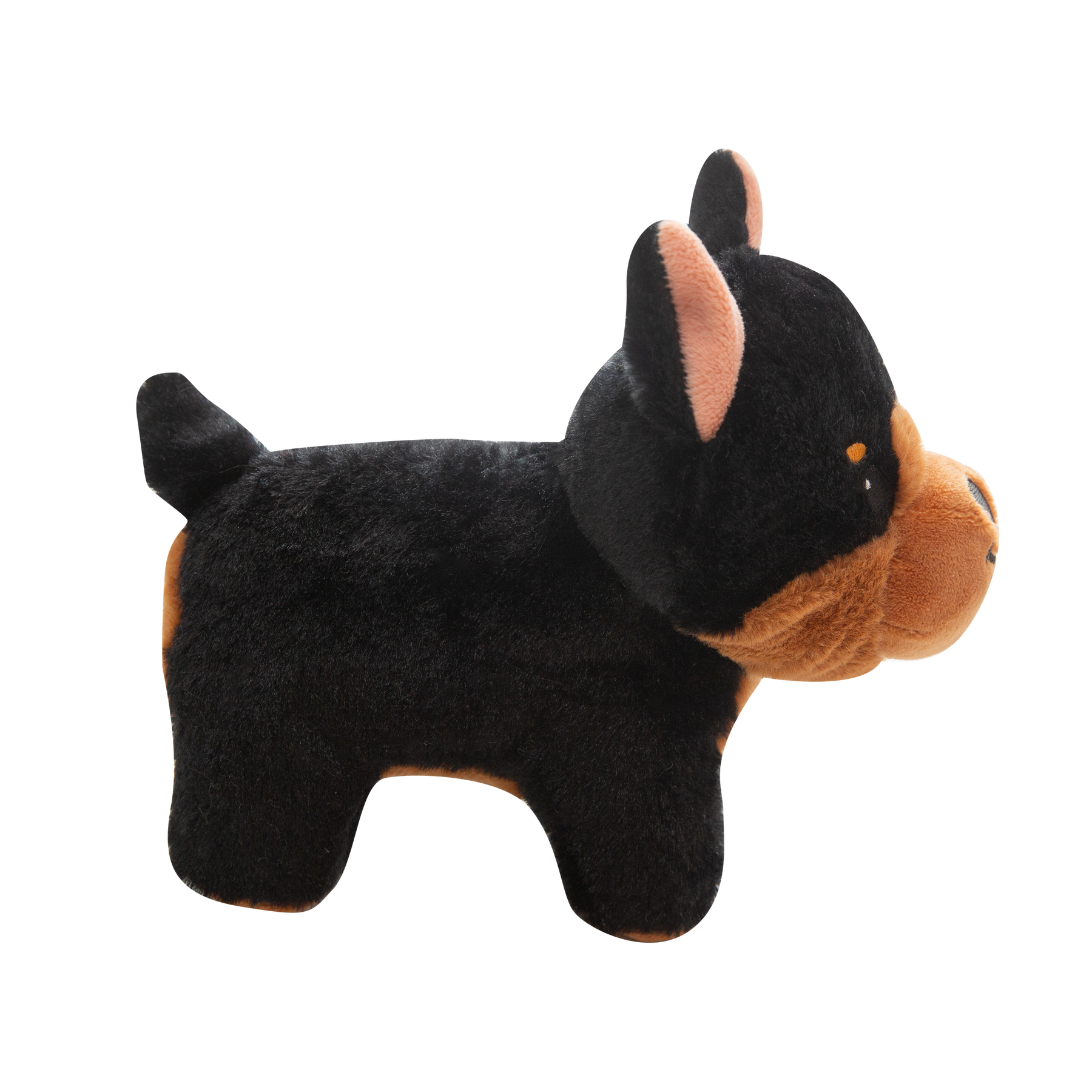 This adorable plush dog toy features a charming black-and-tan pup design with soft, velvety fabric and sweet embroidered details. Its compact, cuddly shape makes it perfect for tossing, fetching, and snuggling during nap time. Lightweight yet durable, it’s gentle on teeth and gums while still ready for everyday play.